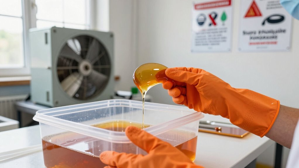 Remember, handling epoxy is like steering a delicate dance—you need the right steps and precautions to stay in harmony. With proper ventilation, gloves, and a clear understanding of curing myths, you’ll keep yourself safe and your projects shining. Think of safety gear as your trusted shield and knowledge as your guiding light through the epoxy’s intricate maze. Stay vigilant, respect the process, and let your craftsmanship flourish without shadows of doubt.