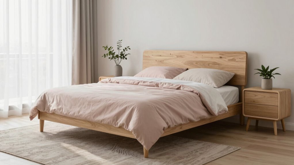 Smoothing the space with rounded designs creates a calming, cozy ambiance, making your bedroom feel welcoming and warm. Sharp edges, while stylish, can sometimes feel stark or startling, disrupting your relaxation. You should choose furniture with rounded designs to foster a friendly, flowing atmosphere. Rounded edges soften the overall look, helping you unwind easily and enjoy a peaceful, pristine sanctuary every night.