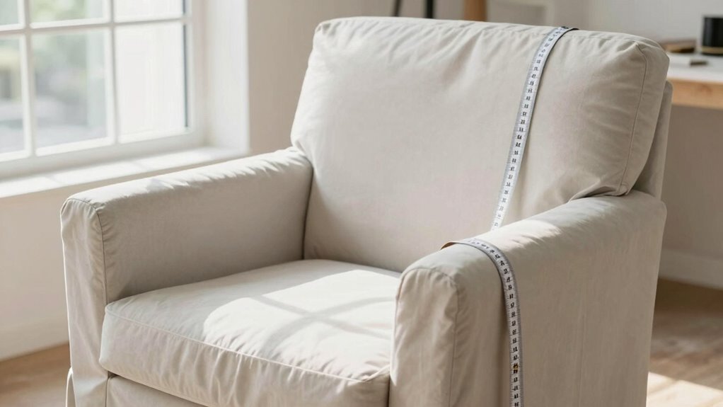 Accurate measurements are the foundation of a slipcover that fits perfectly. When you measure correctly, you ensure the fabric you choose will drape well and complement your furniture. Your fabric selection impacts the slipcover’s fit and comfort, so knowing the right measurements helps you pick the best material. Different slipcover styles, from tailored to relaxed, require precise dimensions to look polished and stay in place. If your measurements are off, your slipcover may be too loose or tight, causing wrinkles or sagging. Taking your time with precise measurements guarantees your slipcover will fit snugly and look professional. Whether you prefer a sleek or casual style, accurate measurements help you achieve a custom look without sewing skills. Utilizing on-page SEO strategies can also help ensure your slipcover project reaches the right audience and gets noticed. Paying attention to fabric stretch can further improve the fit and comfort of your slipcover. Additionally, understanding how fabric properties influence fit can help you select the most suitable material for your needs.