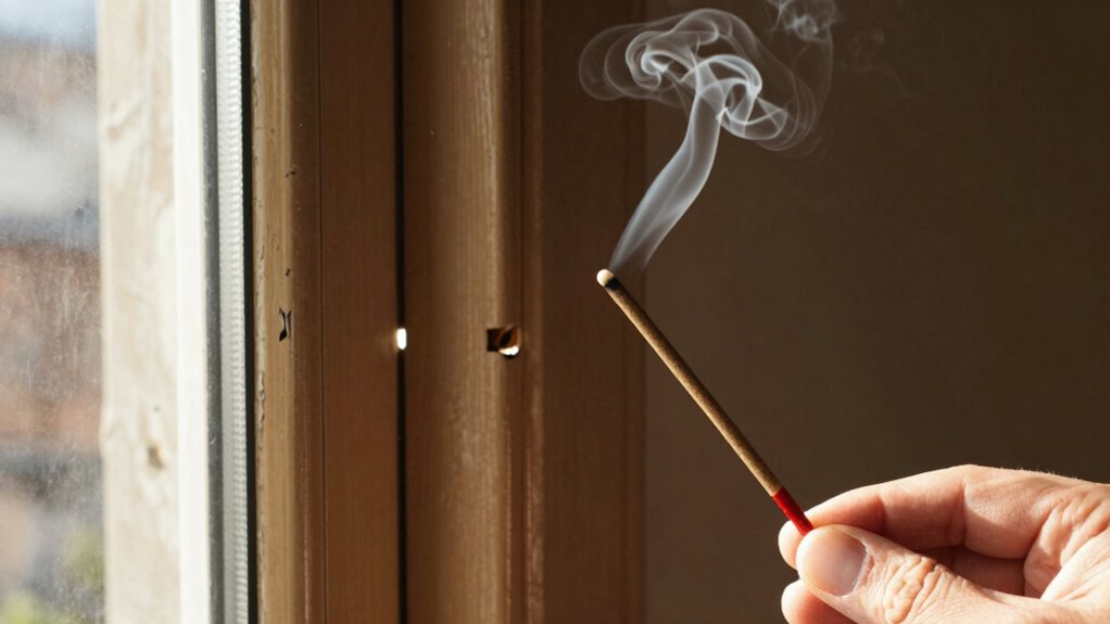 - Use a smoke pen or incense stick near door and window edges to visualize and identify air leaks quickly.