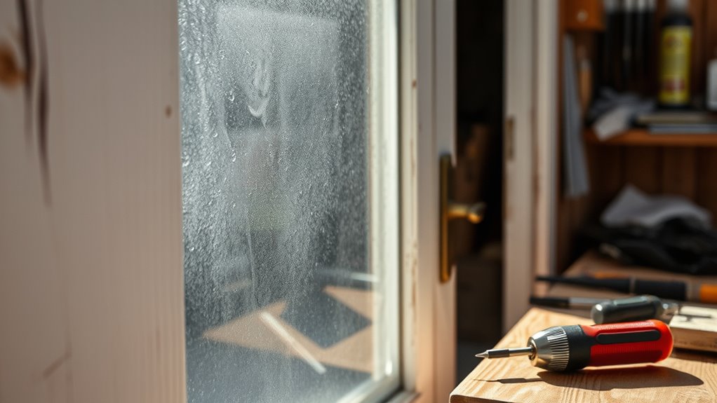 If your door or window sticks, start by inspecting the hinges for dirt, rust, or misalignment. Lubricate the hardware with WD-40 or silicone spray and open and close it to work in the lubricant. If it still sticks, loosen the hinge screws slightly and adjust the position of the door or window. For persistent issues, check for warping or swelling in the frame. Keep exploring for more tips to guarantee smooth operation.