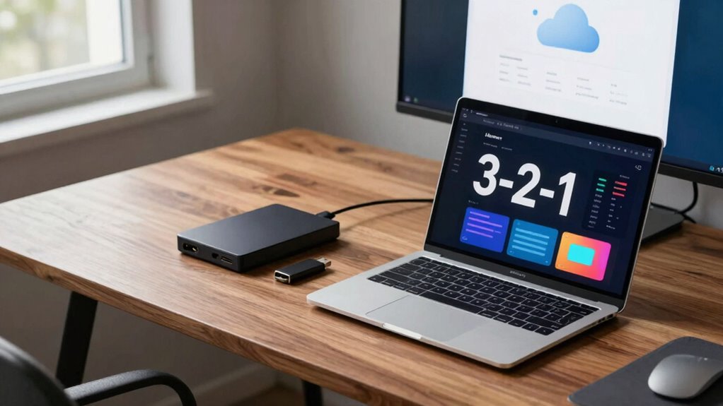 By embracing the 3-2-1 backup rule, you gently safeguard your digital memories and important files from life’s unforeseen twists. It’s like planting seeds of reassurance, knowing your data can flourish even in rough weather. Regularly testing and maintaining your backups guarantees they remain a comforting refuge when you need them most. In nurturing this habit, you create a quiet assurance—a peaceful certainty that your digital world stays secure, no matter what comes your way.