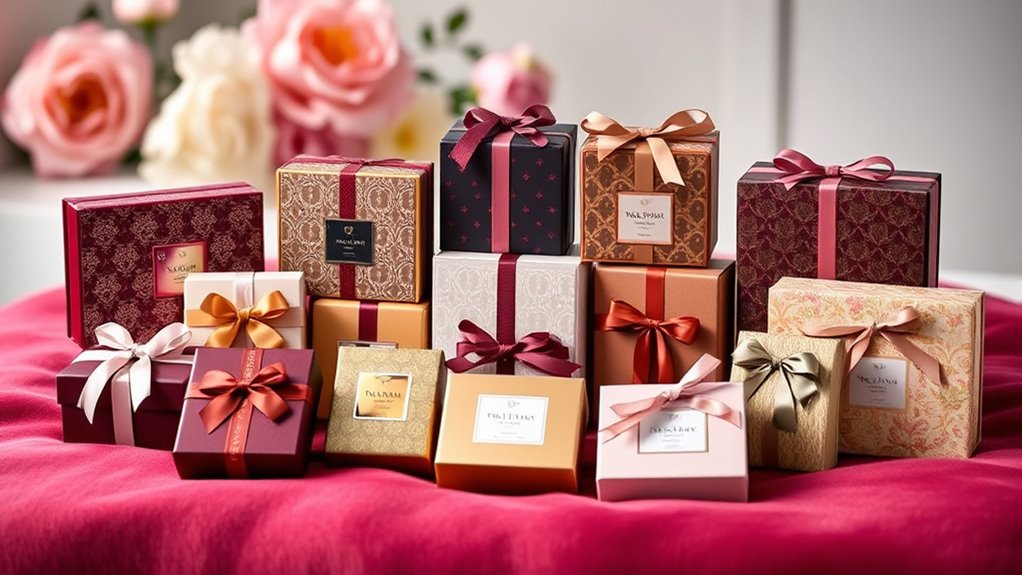 Understanding the occasion and gifting purpose is just as important as considering brand reputation and quality. When picking a designer fragrance gift box, think about the celebration—birthdays, anniversaries, or holidays. Each occasion has its tone and significance that can guide your choice. Next, consider the recipient’s personal fragrance preferences, whether they lean towards floral, citrus, or woody scents. This guarantees the gift resonates with them. Also, determine if the setting is formal or casual, which will help you select between elegant or versatile collections. Finally, keep in mind whether you’re introducing a new scent or expanding their collection, allowing you to choose a set that aligns perfectly with your gifting goal.