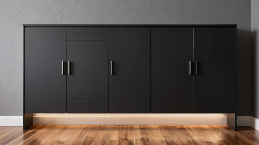 Have you ever found yourself overwhelmed by clutter at your entryway? Determining the right storage capacity is essential. Start by evaluating how many shoes, accessories, or household items you need to store regularly. Think about seasonal versus year-round needs, as this impacts space requirements. It’s also helpful to contemplate additional compartments for umbrellas, keys, or small items to keep everything organized. Don’t forget to think about future needs—your collection might grow, so choose a cabinet that can accommodate that growth. Ultimately, measure your entryway carefully to ensure the cabinet fits comfortably without causing congestion. Balancing your storage needs with available space guarantees you pick a cabinet that’s both functional and proportionate to your entryway.