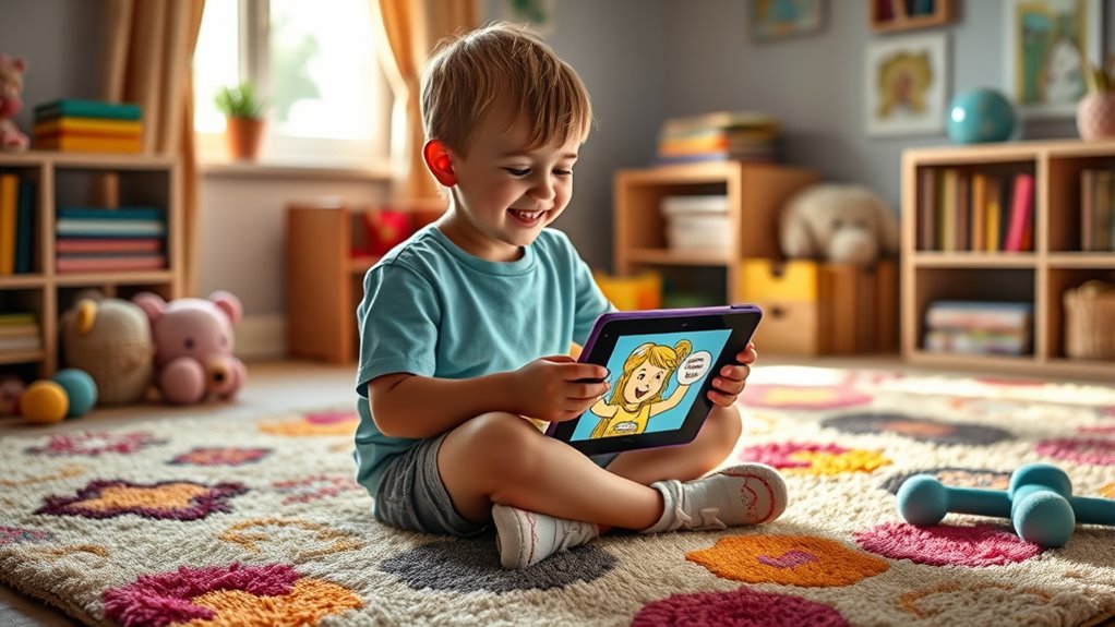 Ensuring a kid’s device stays safe and appropriate often depends on the parental controls built into the tablet. These controls let me set screen time limits, monitor usage, and approve or block content, keeping my child’s experience safe and tailored. Many Fire HD tablets include a dedicated Parent Dashboard app, which allows me to manage settings remotely and view activity reports easily. Content filtering options help guarantee my child only accesses age-appropriate apps, videos, and websites, reducing exposure to unsuitable material. Parental controls often also restrict in-app purchases, block web browsing, and limit communication to trusted contacts, adding extra layers of safety. Additionally, robust features like privacy safeguards and malware protection are essential, giving me peace of mind that my child’s device remains secure and protected.