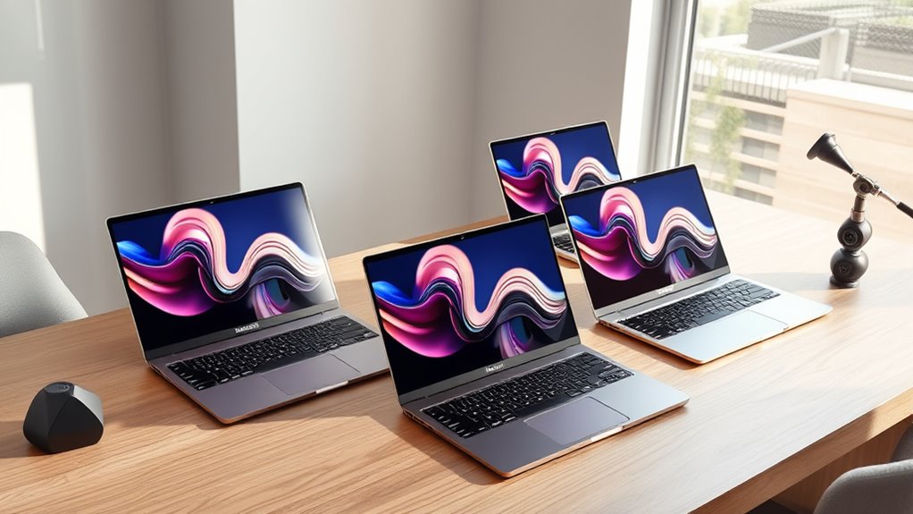 Choosing the right high-end 2-in-1 laptop is like finding the perfect partner—balancing power and portability effortlessly. I once tried juggling a bulky laptop and a tablet, but a sleek 2-in-1 changed my game entirely, making work and play seamless. Remember, the best device fits your lifestyle’s rhythm. So, consider your needs carefully—because, like a good dance partner, your laptop should move with you smoothly and confidently.