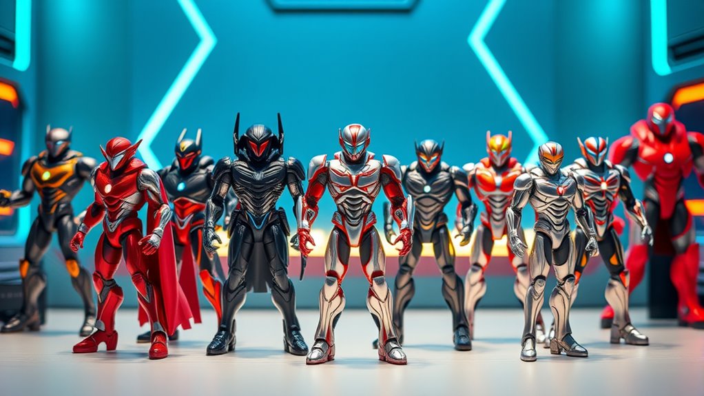Choosing age-appropriate hot toys for 7-year-old boys means focusing on designs that match their developing skills and interests. Toys should feature simple, intuitive controls and safe materials to guarantee they’re easy to handle and play with. Look for designs that stimulate creativity and problem-solving, like transformation or building sets suited for their age. These toys should also balance fun with educational value, helping to develop motor skills, coordination, and cognitive abilities. Bright colors, engaging themes, and interactive features are essential to capture their attention and spark their imagination. At this age, toys that are visually appealing and encourage active play are ideal, supporting their growth while providing hours of entertainment. The right design makes all the difference in fostering a positive and safe play experience.
