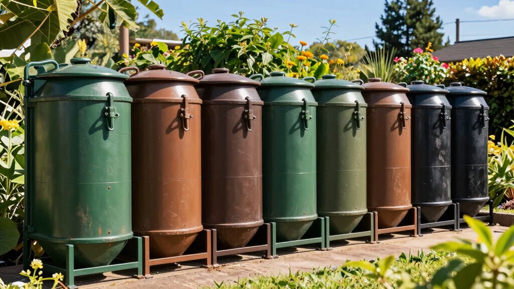 Large capacity compost tumblers are quite energy-efficient because they rely mostly on manual effort to turn the compost, which requires no electricity. Some models have optional motorized features, but even then, their energy use is minimal. I find that their efficiency depends on proper insulation and aeration rather than power consumption. Overall, I think they’re an eco-friendly way to turn organic waste into rich soil without markedly increasing energy use.