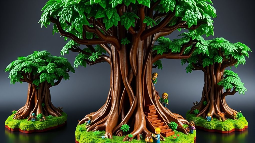 Choosing the right display size for your Lego Zelda Great Deku Tree set helps make certain it fits well in your space and complements your existing collection. Consider the overall dimensions to ensure it comfortably fits on your shelf or tabletop. Check the height and width of each version to see how prominently they’ll feature in your area. Pay attention to the size of detailed components like minifigures and accessories, making sure they proportionally match the main build. Also, think about how the set’s scale compares to other display pieces or collections you plan to showcase together. Keep in mind that larger sets may need more shelving or surface space, which could influence your display setup. Proper sizing ensures your epic adventure looks great and fits seamlessly into your collection.