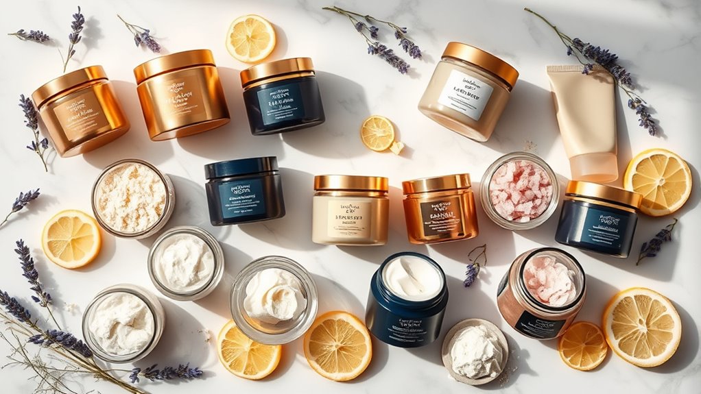 If you’re looking to elevate your skincare, I recommend exploring some of the best luxury body scrub sets, which combine natural ingredients, delightful scents, and effective exfoliation. These sets can transform dull, rough skin into smooth, radiant skin with regular use. From exfoliating scrubs with Himalayan salt and coconut to nourishing body oils and butters, there’s a perfect option for everyone. Keep going to discover top picks that will truly enhance your self-care routine.