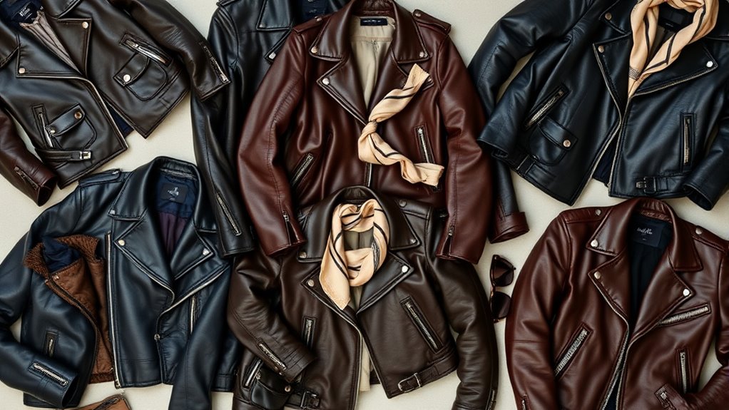 When investing in a luxury leather jacket, understanding the warranty and return policies is crucial to guarantee peace of mind. I always check if the retailer provides a clear warranty policy covering manufacturing defects and material issues for a specified period. It’s also essential to see if the return policy allows free returns or exchanges within a reasonable timeframe, typically 30 to 60 days. I confirm whether the jacket needs to be in its original condition and packaging for a full refund. Additionally, I review if the warranty includes repair coverage or if I’m responsible for repairs. Finally, I keep an eye out for any restocking fees or conditions that might complicate my return or exchange process.