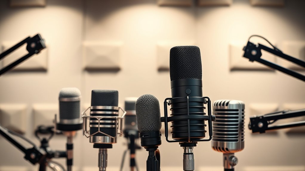 Choosing the right microphone can truly elevate your podcast’s sound quality. For example, I once recommended the Rode PodMic to a beginner, and their clarity instantly improved listeners’ experience. Remember, consider your space, budget, and recording style. Whether you’re streaming gaming or hosting interviews, the perfect mic makes all the difference. Invest wisely, and your audience will notice the professional, crystal-clear sound you deliver every time.