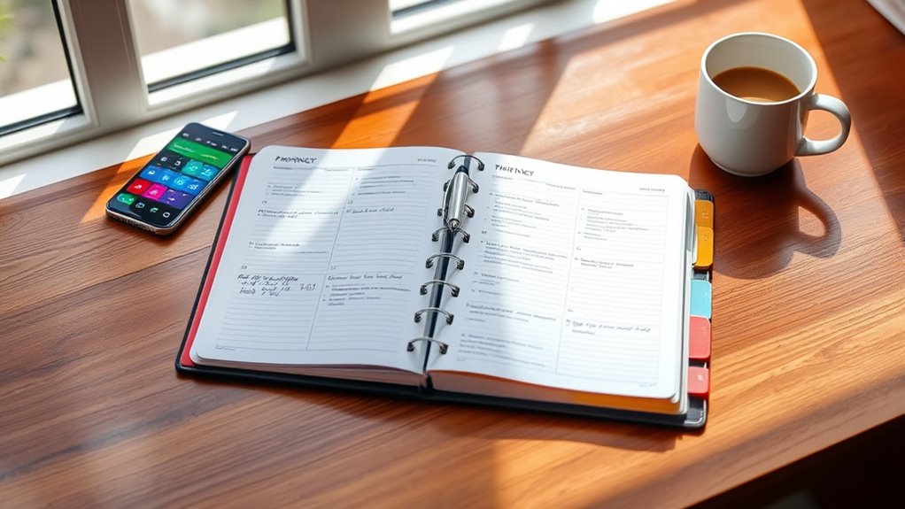 Choosing the right planner for 2026 means balancing what you spend with the value you’ll get. Comparing costs helps identify which options offer the best features for your budget. It’s important to evaluate the planner’s layout, durability, and any included accessories relative to its price. Higher-priced planners often come with extras like goal-setting pages, stickers, or storage pockets that boost their overall value. On the other hand, budget options may lack some premium features but still cover essential planning needs at a lower cost. Considering how long the planner will last and whether it can withstand daily use guarantees you get maximum value from your investment throughout the year. Ultimately, a good balance of price and features keeps you organized without overspending.