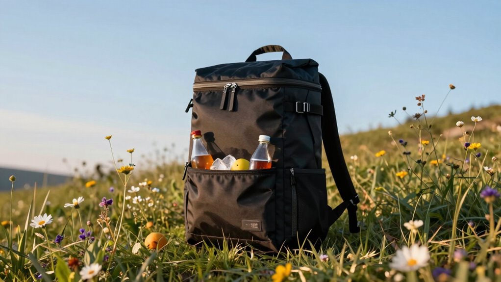 Security features are crucial when selecting a premium cooler backpack for day trips because they help protect your valuables from theft and unauthorized access. I look for backpacks with RFID-blocking pockets to stop thieves from scanning my credit cards and IDs. Hidden anti-theft compartments are also essential, providing a secure spot for my phone, wallet, and passport. Lockable zippers or other locking mechanisms add extra security, especially when I’m in crowded or unfamiliar places. Reinforced, tamper-proof closures prevent accidental openings and unauthorized access. I also prefer discreet designs that don’t reveal where I keep my valuables, reducing the risk of targeted theft. These features give me peace of mind, knowing my belongings are safer during my outdoor adventures.
