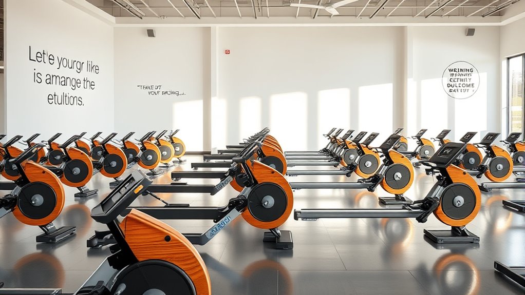 Finding a rowing machine with the right resistance levels is just one part of the equation; build quality and stability are equally important for a safe and effective workout. I’ve learned that a sturdy frame made of high-quality materials, like alloy steel or reinforced metal, is essential for durability. Dual slide rails or reinforced tracks ensure a stable, wobble-free movement, reducing the risk of tipping during intense sessions. Non-slip, ergonomic foot straps and padded seats enhance comfort, preventing slippage and fatigue. Also, I look for well-designed connection points with corrosion-resistant coatings to boost stability and lifespan. Finally, a wide, balanced base with adjustable stabilizers helps maintain equilibrium on different flooring surfaces, ensuring consistent performance throughout my workouts.