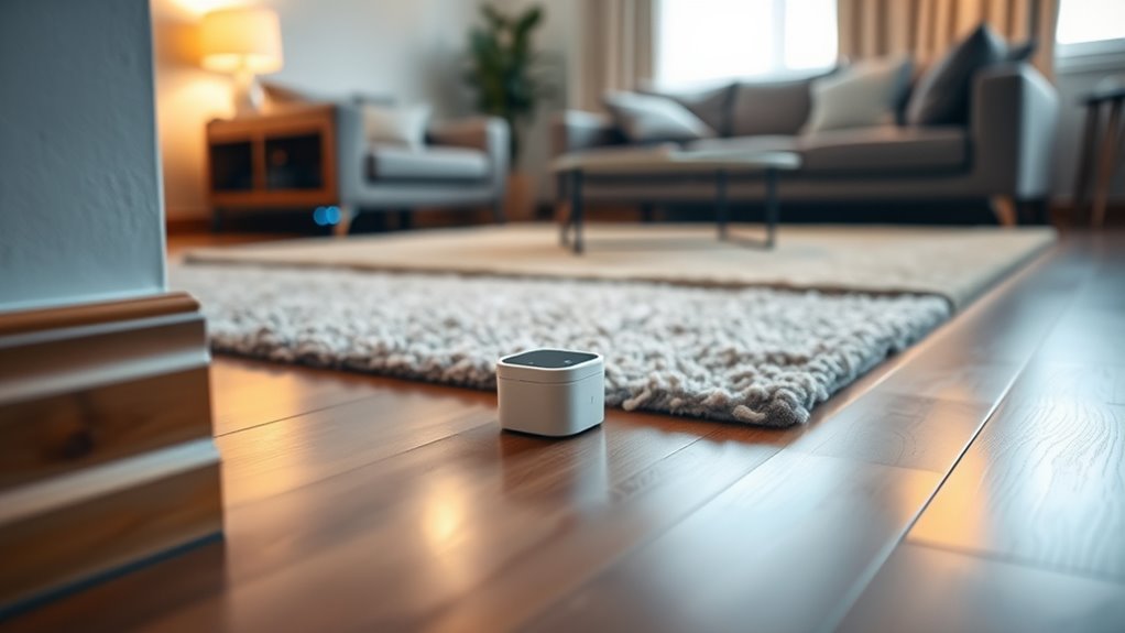 Imagine a quiet night, rain tapping softly outside while your home stays safe and dry inside, thanks to the right leak sensor. With these smart detectors, you’ll have peace of mind, knowing they’re watching over your space, ready to alert you at the first sign of trouble. Investing in one means protecting your sanctuary from costly water damage—so you can sleep soundly, rain or shine.