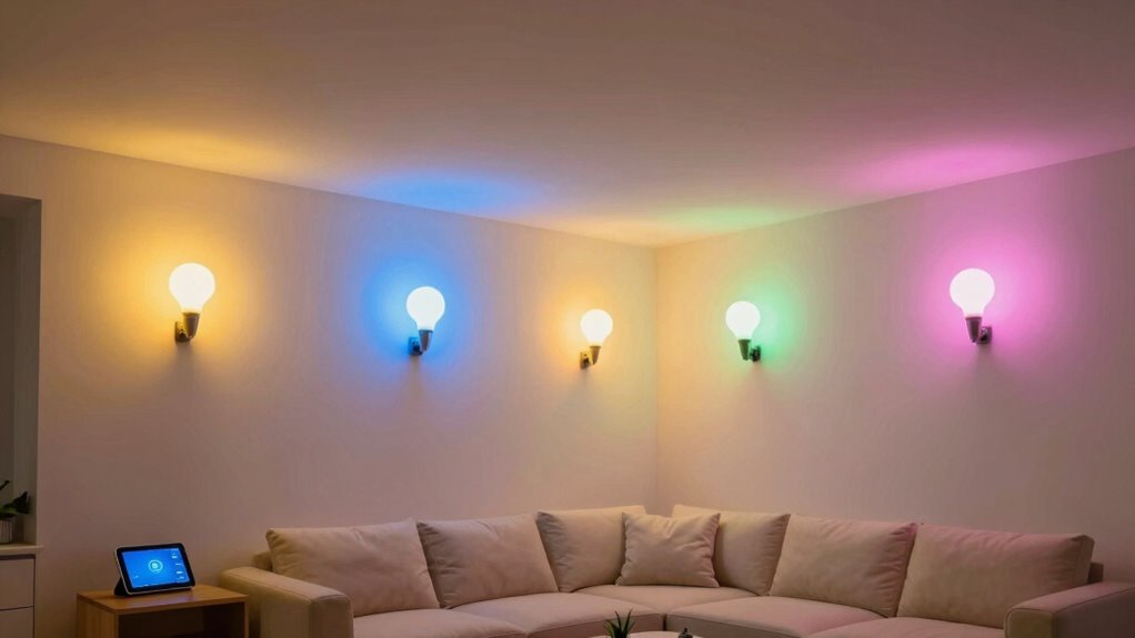 Switching to smart lighting is like turning on a savings floodlight. I’ve found that these systems use markedly less energy than traditional bulbs, often cutting energy bills by 20-50%. Over time, the cost savings really add up, especially with features like dimming and scheduling that optimize usage. Plus, smart bulbs last longer, so I save on replacements too. It’s a smart move—literally—for my wallet and the environment.