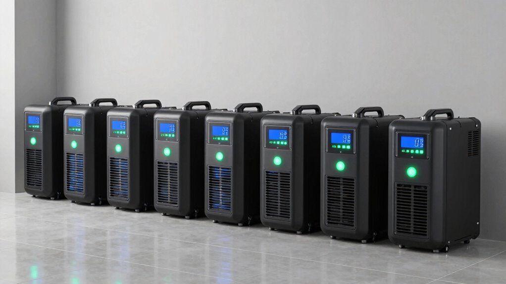 When selecting a sump pump with a battery backup system, paying attention to monitoring and alert features can make all the difference. A reliable system should offer real-time tracking of water levels, pump status, and battery health, so you’re always informed about its performance. Alert systems such as email, text, or push notifications are essential for prompt maintenance or action during power outages or pump issues. An intuitive monitoring interface that displays voltage, current, fault status, and logs helps me stay proactive in managing the system. Automated alerts prevent flooding by notifying me immediately of any problems before water damage occurs. Additionally, compatibility with remote monitoring apps provides peace of mind, letting me check and diagnose my sump pump from anywhere, ensuring continuous protection.
