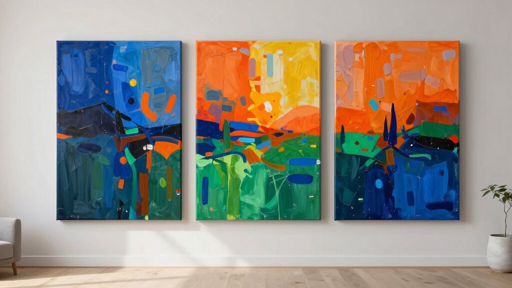 Selecting a wall art triptych that complements your existing decor is essential for creating a cohesive and inviting space. I recommend considering the style of your room—whether it’s modern, rustic, minimalist, or traditional—and choosing artwork that aligns with that theme. Matching the color palette of the triptych to your room’s dominant hues helps create a seamless visual flow. Think about the overall aesthetic you want—bold and vibrant or subtle and neutral—and select art that enhances that vibe. Thematic elements, like nature scenes, abstract designs, or geometric patterns, can also elevate your space’s ambiance. Ultimately, pay attention to the size and arrangement of the triptych to ensure it balances well with other decorative elements on your wall.