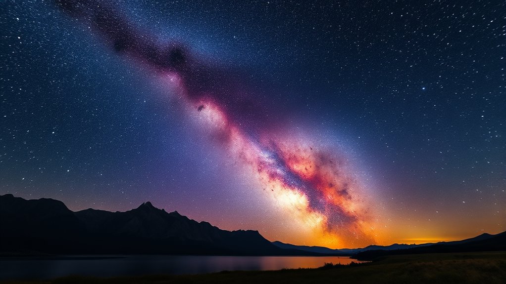 Lens distortion is like a funhouse mirror, warping the view and stretching or bending the stars. It can make the Milky Way appear warped or skewed, reducing the photo’s clarity and beauty. To get sharp, natural shots, I look for lenses with minimal distortion and use software to correct any imperfections. This way, I keep the celestial masterpiece true to its stunning form, capturing the night sky’s magic.